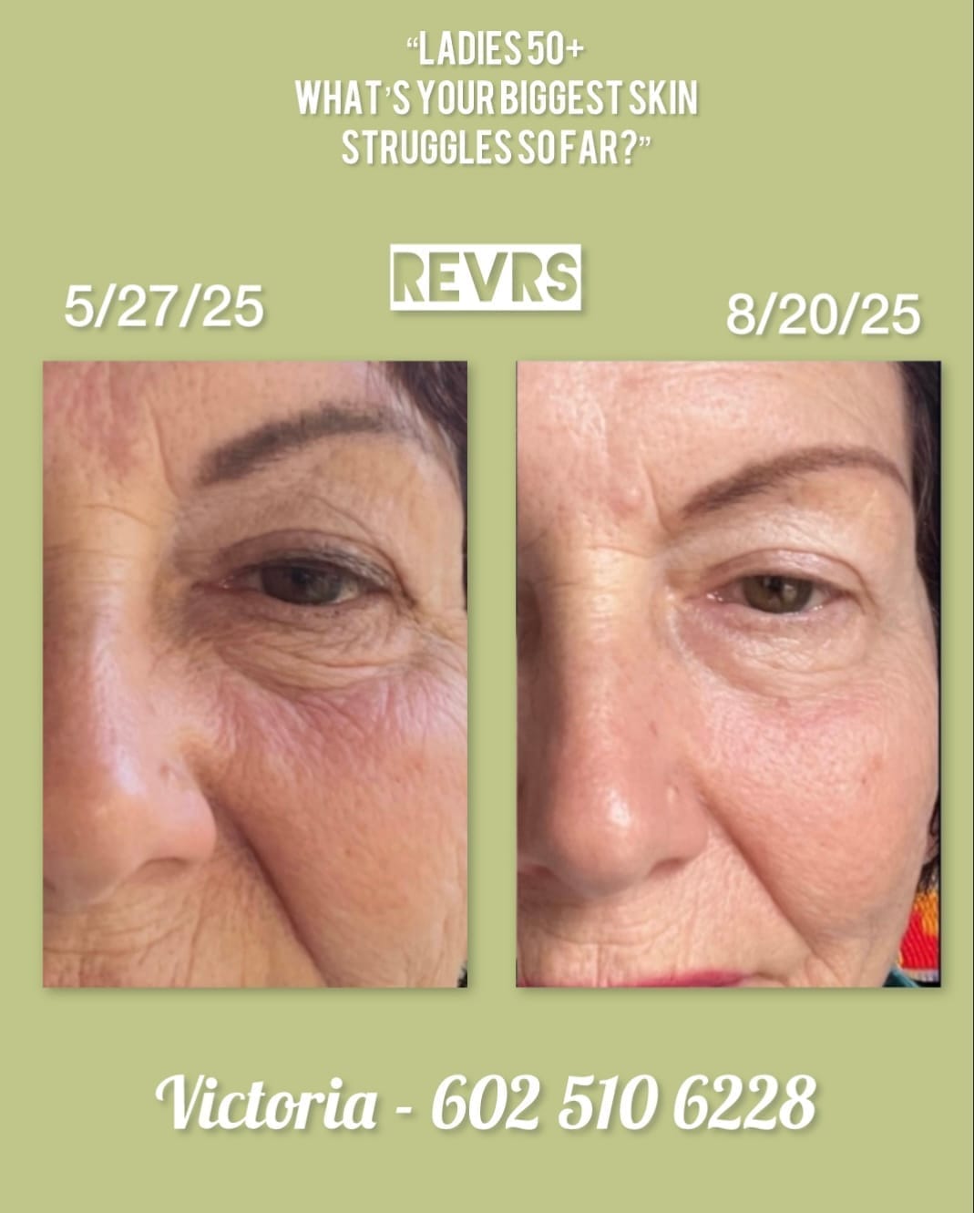 "In October of 2024, I started noticing changes I wasn't happy about. My skin was sagging, looking dull, and my hair was thinning so much in the back that I had to cut it shorter than I wanted. It honestly shook my confidence. Then I saw a friend's before-and-after picture on Facebook after taking REVRS for just a short time - and I knew I had to try it.